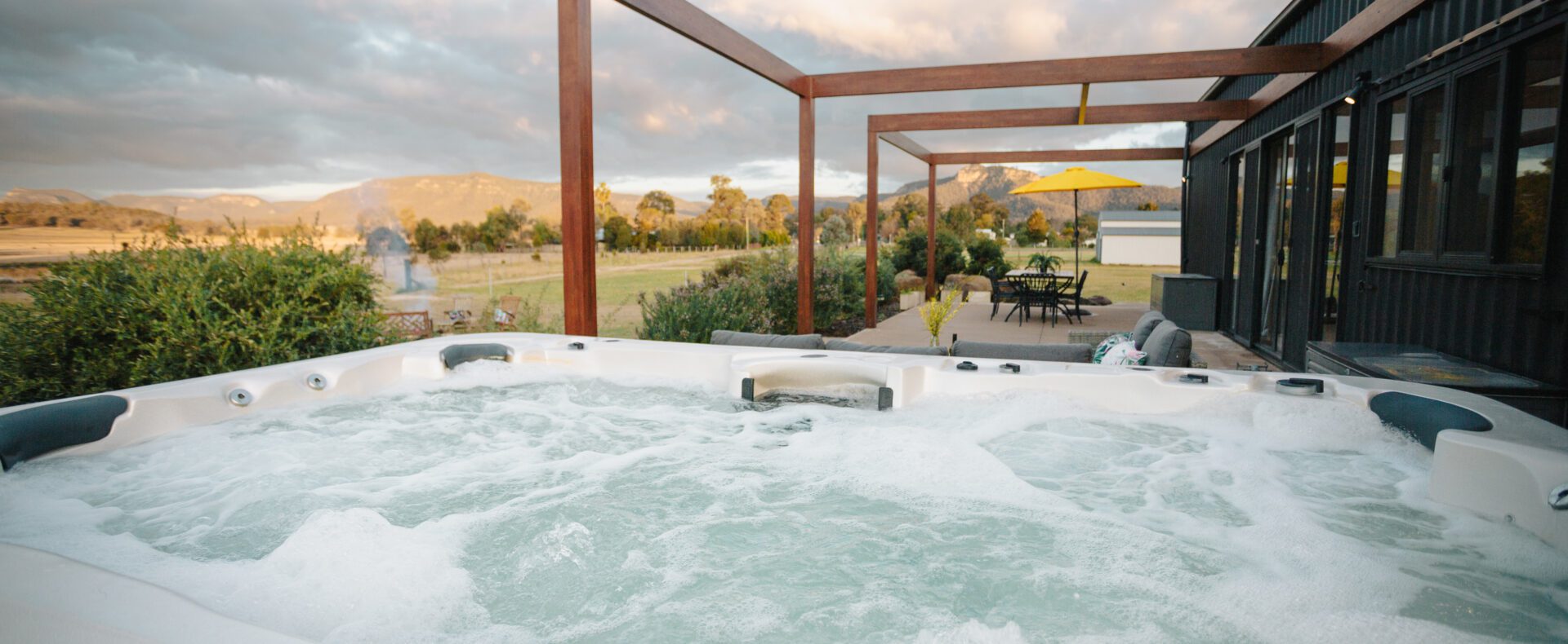 The Barn is designed to immerse you in Hunter Valley outdoor living:- A 10-person spa pool with vineyard and country views